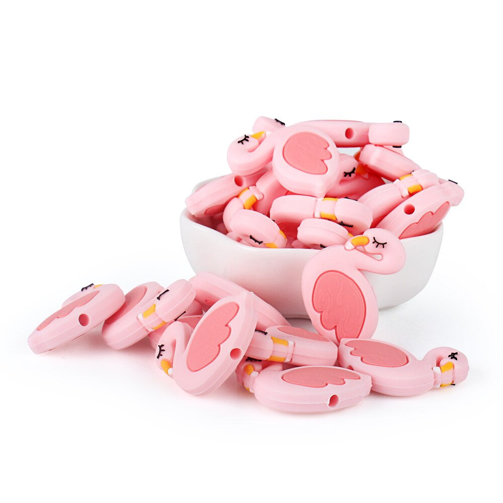 Item: Baby Silicone Teething Flamingo Beads Nipple Chain Tools Weight: About 3.5g Size: About 30*29*8MM Shape: Flamingo Animal Packing: 1 pieces Baby Silicone Flamingo Beads With Opp Bag Age range: 4-6 months Material: food grade organic silicone teether Color: You can choose the color you want Suitable age: 7-9 months Features: soft, safe and non-toxic 100% silicone material Location: Baby shower gifts, Christmas gifts, birthday gifts Certificate: EN71 / ASTMF / AU ASNAS / BPA / CE / CPSIA Benefits: Relieve the baby’s growing toothache Cleaning Tips:The new item should be cleaning by Warm water before use. And it can be used after cooling, Do not expose to the sun or boiling water ,It should be cleaning after each use.