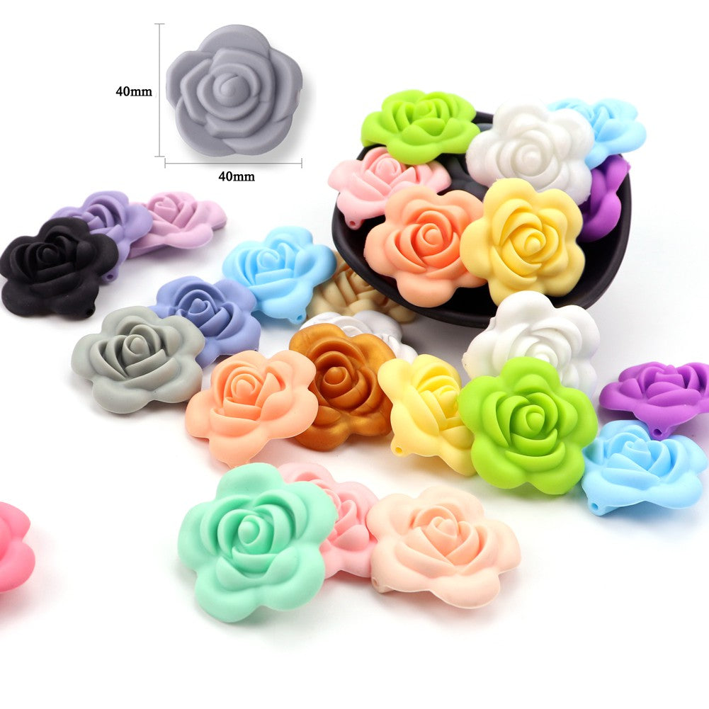 Silicone Rose Flower Teething Beads